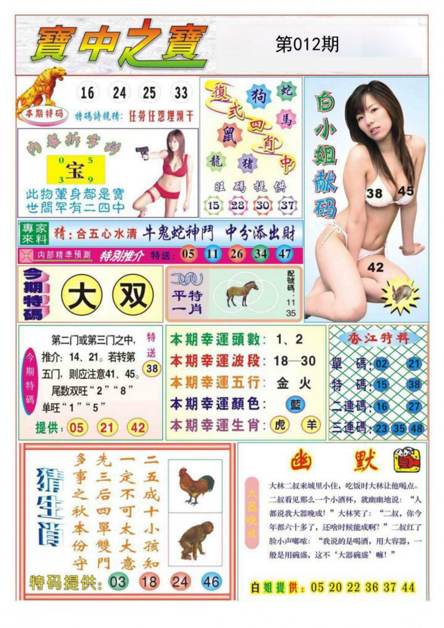 008期:【单:蛇牛兔 双:马狗鼠】开12马对 |